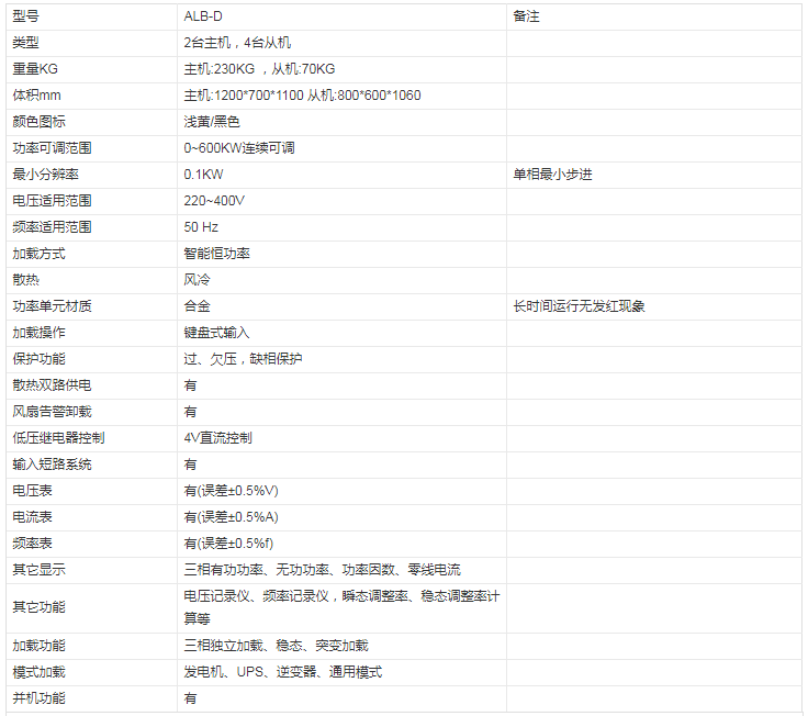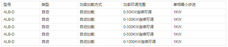 ALB-D系列自動交流負載箱產品規格(1000KW以上可定制):